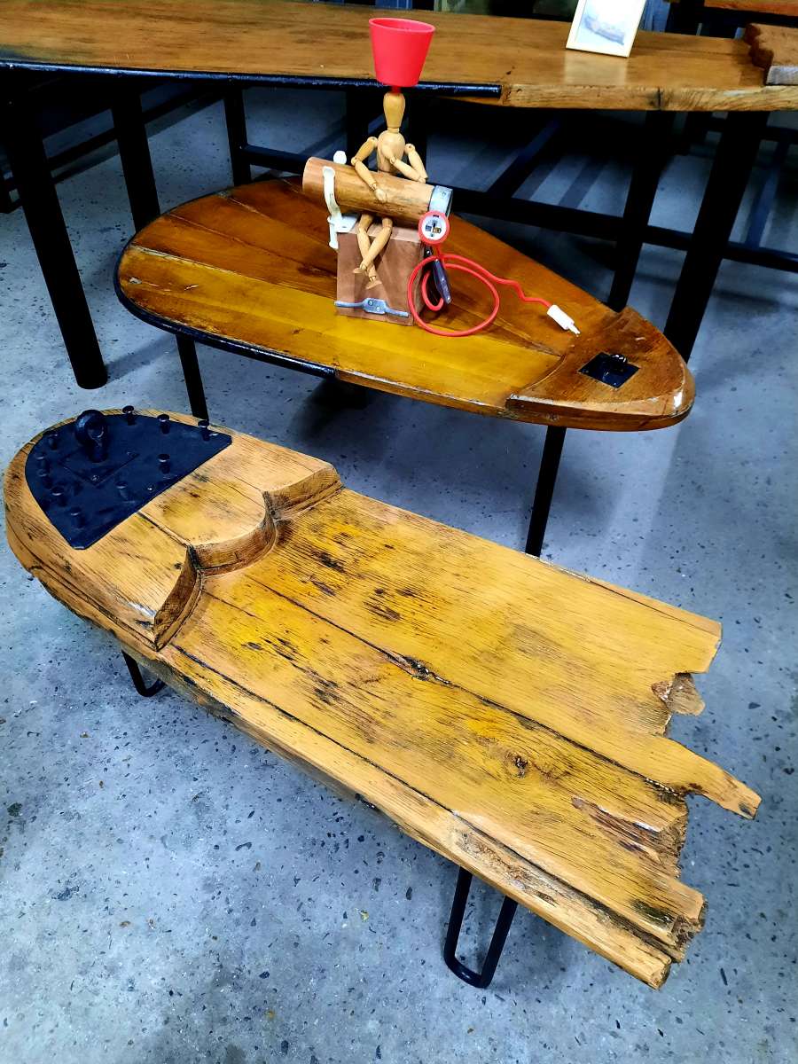 Zoals prachtige tafels van scheepszwaarden cq zijzwaarden en bootkasten. Op deze pagina zie je een aantal voorbeelden.